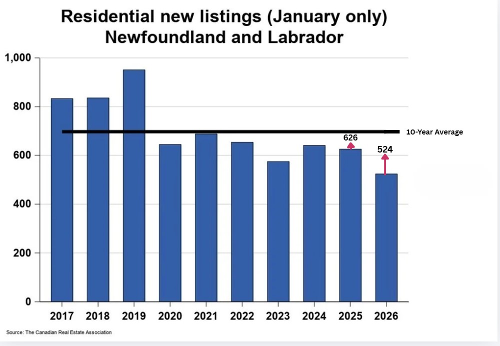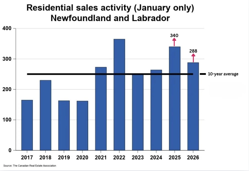 The number of homes sold through the MLS® System of the Newfoundland and Labrador Association of REALTORS® totaled 288 units in January 2026, a decline of 15.3% from January 2025.